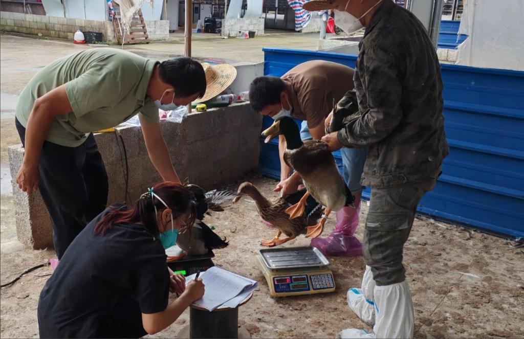学生协助进行大麻鸭养殖数据监测