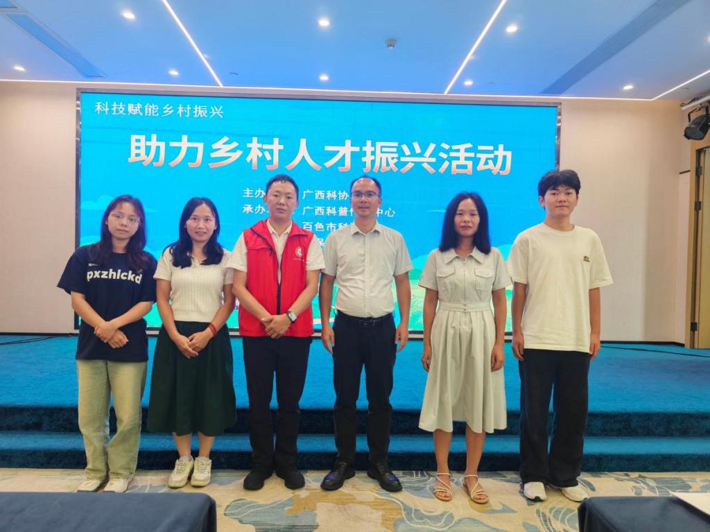 2025年8月14日,由广西科协主办,广西科普传播中心、百色市科协承办的 “助力乡村人才振兴活动” 成功举办。本次活动聚焦乡村振兴战略,通过整合多方资源,旨在为乡村人才培养和产业发展提供有力支持。我校张文明、苏乾莲、叶丽娜老师三位老师以及隆誉、邓德飞两位同学参加了此次活动。