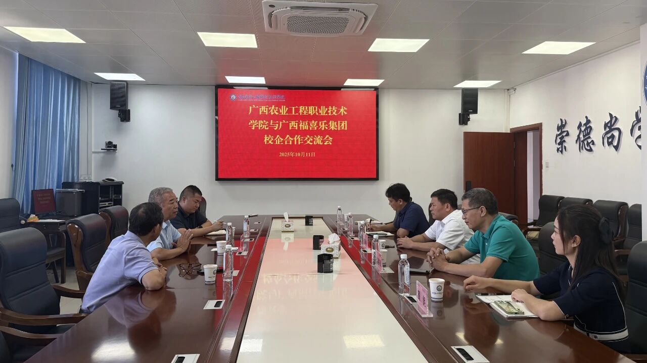 10月11日上午,广西福喜乐集团到访我校,围绕养猪产业学院建设开展深入交流。学校党委副书记、校长李振科,副校长莫嘉凌,广西福喜乐集团董事长黄定寿,原广西生猪首席科学家、广西大学教授兰干球、动物科技学院院长李显等参加会议。