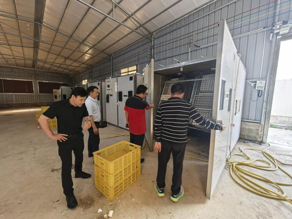 在占地16亩的恒温孵化中心,全自动翻蛋机、智能温湿度控制系统与胚胎发育监测平台有序运行。黎总介绍,通过物联网实时调控,种蛋孵化率提升至95%以上,出壳时间误差控制在16小时内,显著提高生产效益。