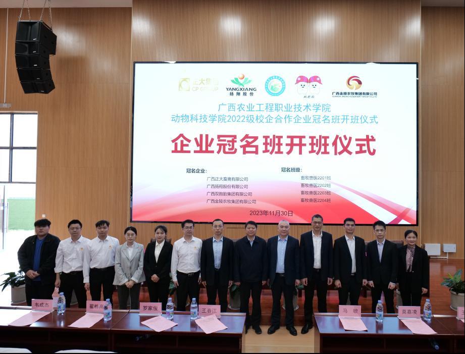 校园与企业牵手,学业与就业接轨。2023年11月30日,动物科技学院举行了广西农业工程职业技术学院动物科技学院校企合作企业冠名班开班仪式暨揭牌仪式。