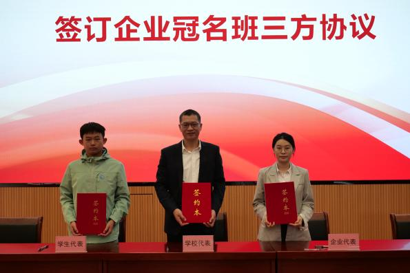 接下来,广西农业工程职业技术学院莫嘉凌副校长与冠名班学生代表、企业代表签订了冠名班三方协议。