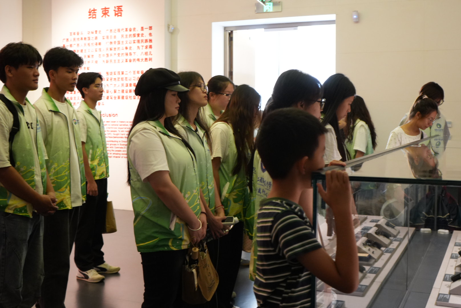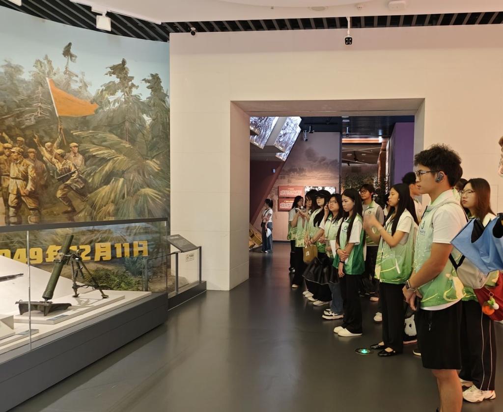 在讲解员的引领下,同学们专注聆听场馆内的红色历史,沉浸式地感受红色文化的厚重与震撼。当讲解员讲述我国近代被迫开放的屈辱历史时,同学们神情凝重,深刻铭记那段不堪回首的岁月,同时感悟到先辈们不屈不挠的抗争精神。而在1949年12月11日广西全境解放的相关展品前,讲解员生动地讲述了那段胜利的历程,同学们的脸上洋溢着自豪与敬意,为先辈们的英勇奋斗而热血沸腾。