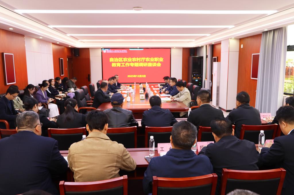 自治区农业农村厅科技处、人事处有关负责同志,学校各部门、二级学院负责人、教师代表参加了调研座谈会。