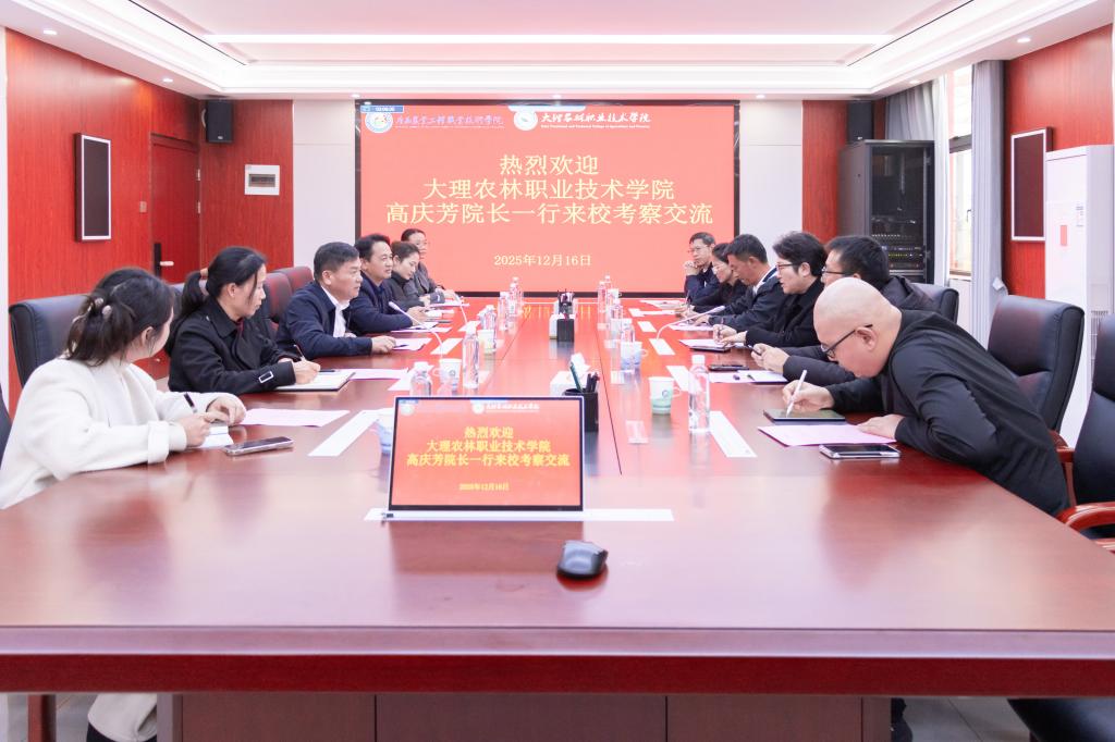 高庆芳介绍了大理农林职业技术学院及动物科学学院的发展概况。高庆芳称,此次来访目的在于借鉴我校在产教融合、专业内涵建设、校企合作以及学生管理等领域积累的先进经验。双方院校领导围绕专业与学科建设规划、“双师型”教师队伍培养、地方特色产业等核心议题展开热烈研讨,深入交流了各自在人才培养中的痛点、难点与解决方案,就未来开展师资互访、教学资源共享等合作达成初步意向。