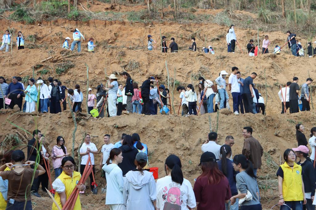 和煦的春风里,大家脸上洋溢着劳动的喜悦,一棵棵树苗在师生的共同努力下稳稳扎根山坡,成为校园里一道崭新的绿色风景线。