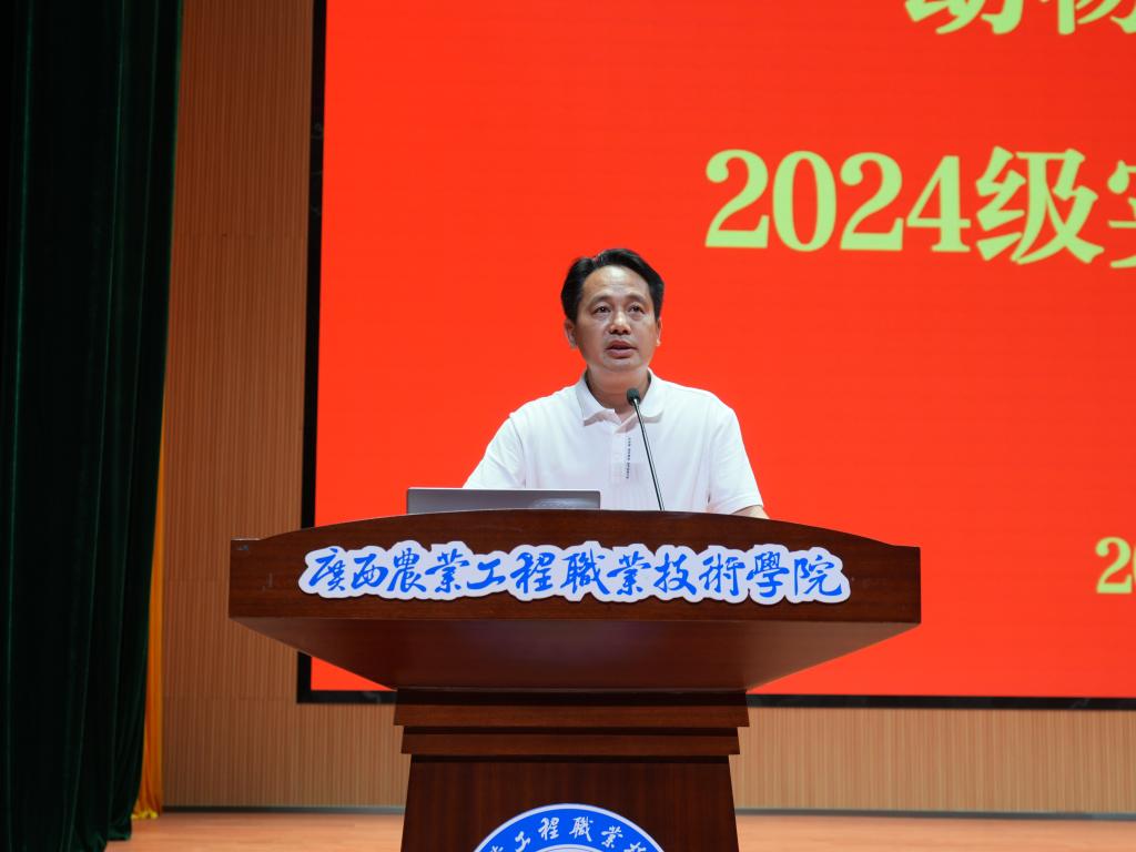 为扎实推进实践育人工作,保障实习教学规范有序开展,4月9日晚,我校动物科技学院在学术交流中心召开2024级学生实习动员大会。学校副校长莫嘉凌出席会议,教务处、招生就业处相关负责同志,动物科技学院客座专家吴柱月、全体教职工,合作企业桂林力源集团兽医总监代科及动物科技学院2024级全体学生参加会议。