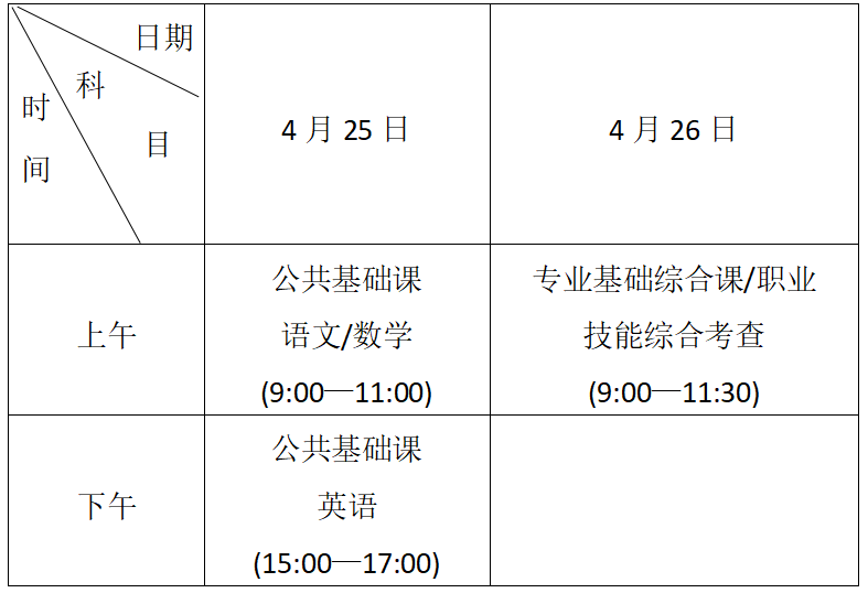 一、考试科目及时间安排