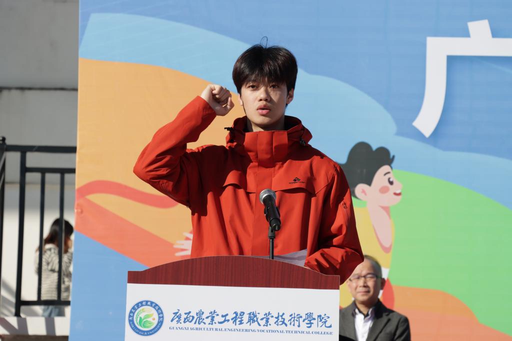 11月20日上午,运动会正式拉开序幕。学校党委书记马敏,党委副书记、校长李振科,副校长李祖培,副校长莫嘉凌,总会计师韦炜出席开幕式,全体教职工及全体在校学生参加了开幕式。党委副书记、校长李振科为运动会开幕式致辞,他在致辞中表示,学校将坚持不懈用习近平新时代中国特色社会主义思想铸魂育人,扎实落实立德树人根本任务,坚持德、智、体、美、劳五育并举,不仅传授专业知识与技能,更注重培养吃苦耐劳的职业素养、终身学习的综合能力与服务三农的责任担当。他希望全体运动员以饱满的热情、昂扬的斗志投入到比赛中,牢记“友谊第一、比赛第二”的精神,遵守比赛规则,服从裁判指挥,注意比赛安全,在赛场中展现农工院学子奋勇争先、团结协作的体育道德风尚,将运动激情转化为深耕农业、科技兴农的奋进力量。随后,在全体师生的热烈掌声中,党委书记马敏宣布广西农业工程职业技术学院第四届运动会正式开幕!