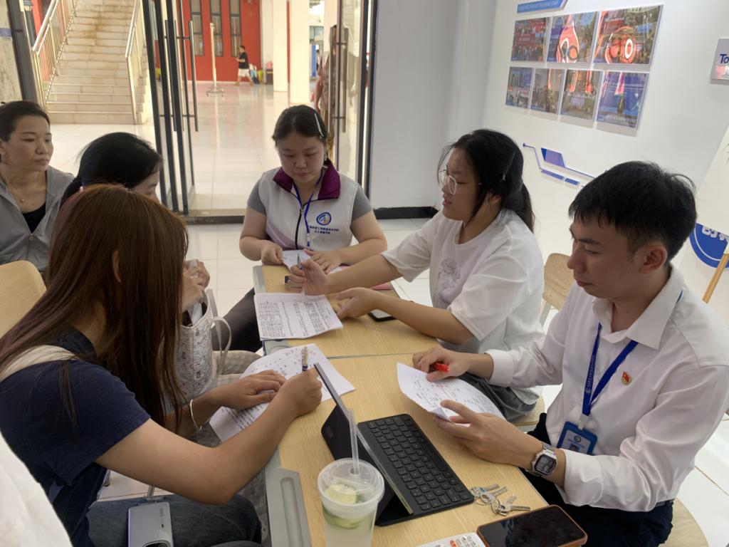 为真正实现“入学即心安”,学院精心构建“全周期服务网”:学院门口指引标识清晰明了,志愿者们统一着装、主动热情,化身“校园导航”,协助新生搬运行李、指引路线,全程陪伴;报到点设置“一站式”服务通道,实现身份核验与宿舍入住无缝衔接,高效便捷。针对行李较多或行动不便的新生,学院专门安排“爱心摆渡车”提供接送服务;同时,“绿色通道”也同步开启,确保家庭经济困难学生顺利入学。