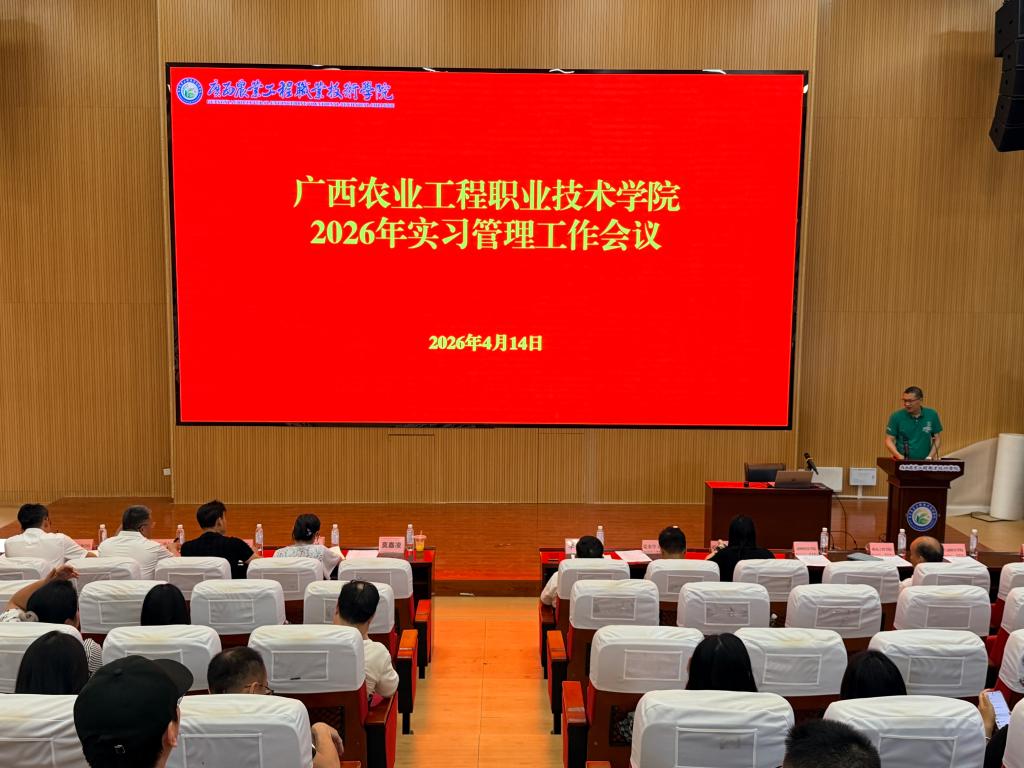 为深入贯彻国家职业教育方针政策及《广西职业学校学生实习管理实施细则》精神,查找实习管理工作短板,全面部署2026年学生实习管理工作,4月14日下午,我校在2号阶梯教室召开2026年实习管理工作会议。