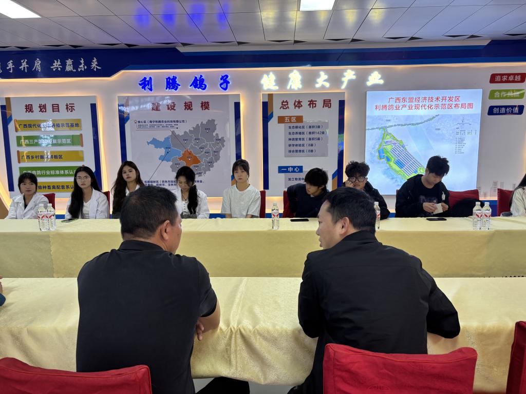 随后,师生实地参观了智能化种鸽核心育种区、全自动孵化车间和四星级肉鸽养殖产业示范区,系统了解了公司即将启动的三千万元欧洲引种计划——引进一万五千对优质原种鸽,打造国内顶尖种鸽繁育基地。先进的饲养工艺与繁育技术让师生近距离感受科技赋能肉鸽行业的魅力,实现了理论知识与产业实践的无缝对接。