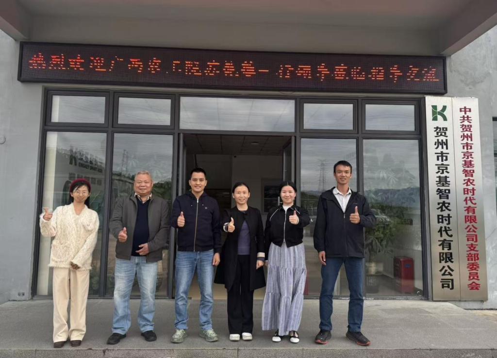 为进一步深化校企合作,精准把握学生实习与就业动态,10月23日至24日,我院副院长苏乾莲、客座教授吴柱月、实习就业干事陈鑫及实训基地管理员谭明旺一行四人赴贺州市京基智农时代有限公司(以下简称“贺州京基智农”)开展实习生慰问工作,实地考察企业生产与生活环境,并与企业代表围绕校企合作深化、实训基地建设等核心议题展开深度座谈。
