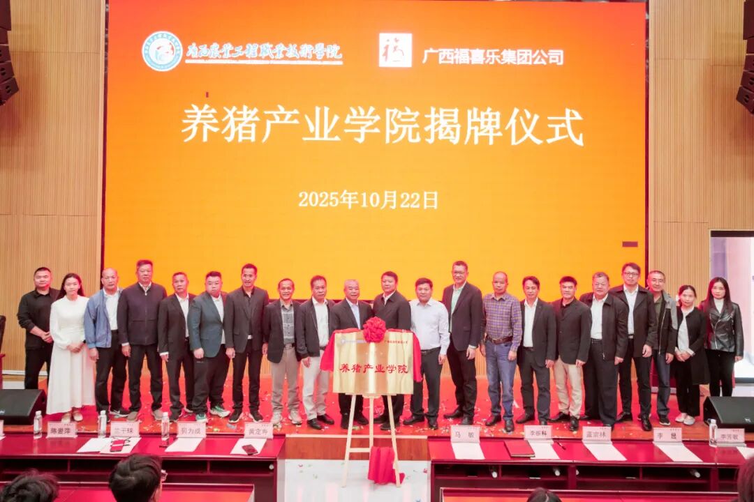 仪式上,校企双方代表共同为“养猪产业学院”揭牌,并合影留念。此次合作标志着学校在推进校企协同育人、服务乡村振兴方面迈出坚实一步。