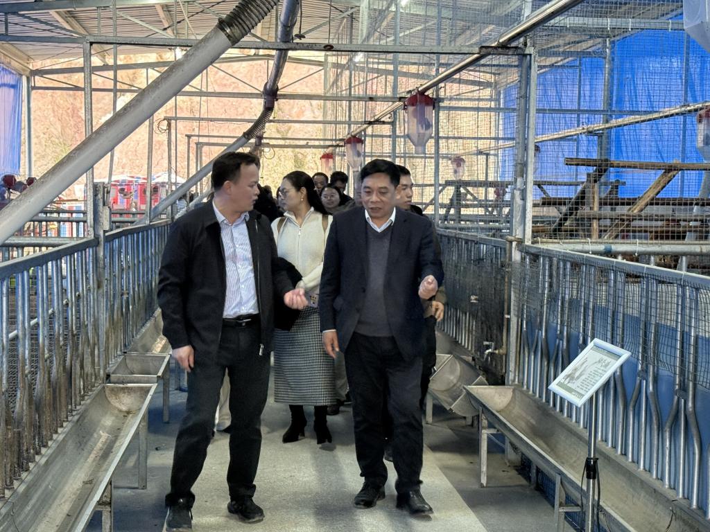 座谈会后,在李显院长的陪同下,来访领导专家实地参观了我院后山实训基地,先后走访消毒仓、禽舍、牛舍、竹鼠养殖区、肉鸽养殖区等实训场所,详细了解实训设施建设与管理、养殖技术应用及学生实践教学开展等情况。领导专家们对我院实训基地的规模化布局、实操导向的教学模式给予高度评价,现场就养殖技术优化、疫病防控实操要点、产学研融合路径等关键问题,与我院教师开展深入交流。