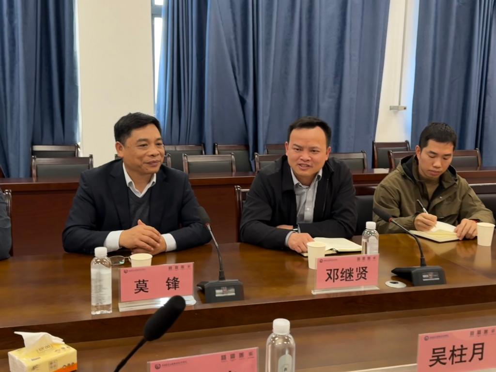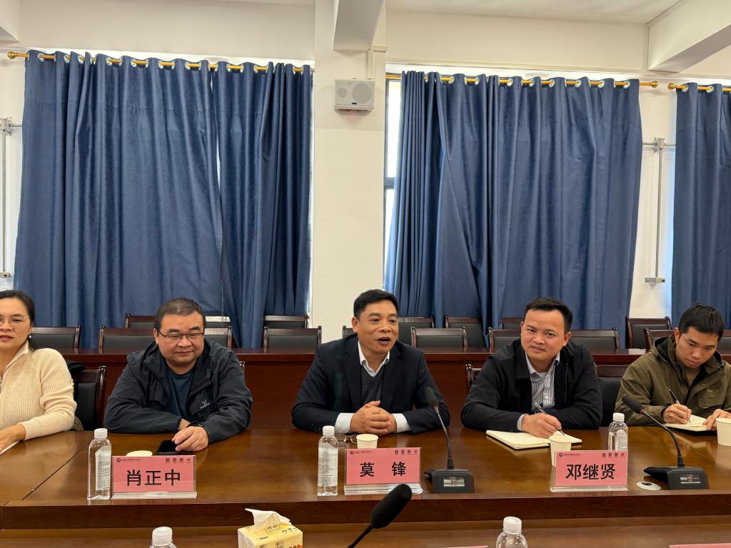 农职大畜牧研究院党总支书记莫锋教授、副院长肖正中、副院长潘艳等9名学校领导专家,崇左市科技局局长邓继贤等3名领导出席座谈。我院院长李显主持座谈会并致欢迎辞,全面介绍了学院组织架构、专业设置、学生规模、实训基地建设及近年办学成效,充分展现了学院在畜牧兽医领域的育人优势与服务产业潜力。