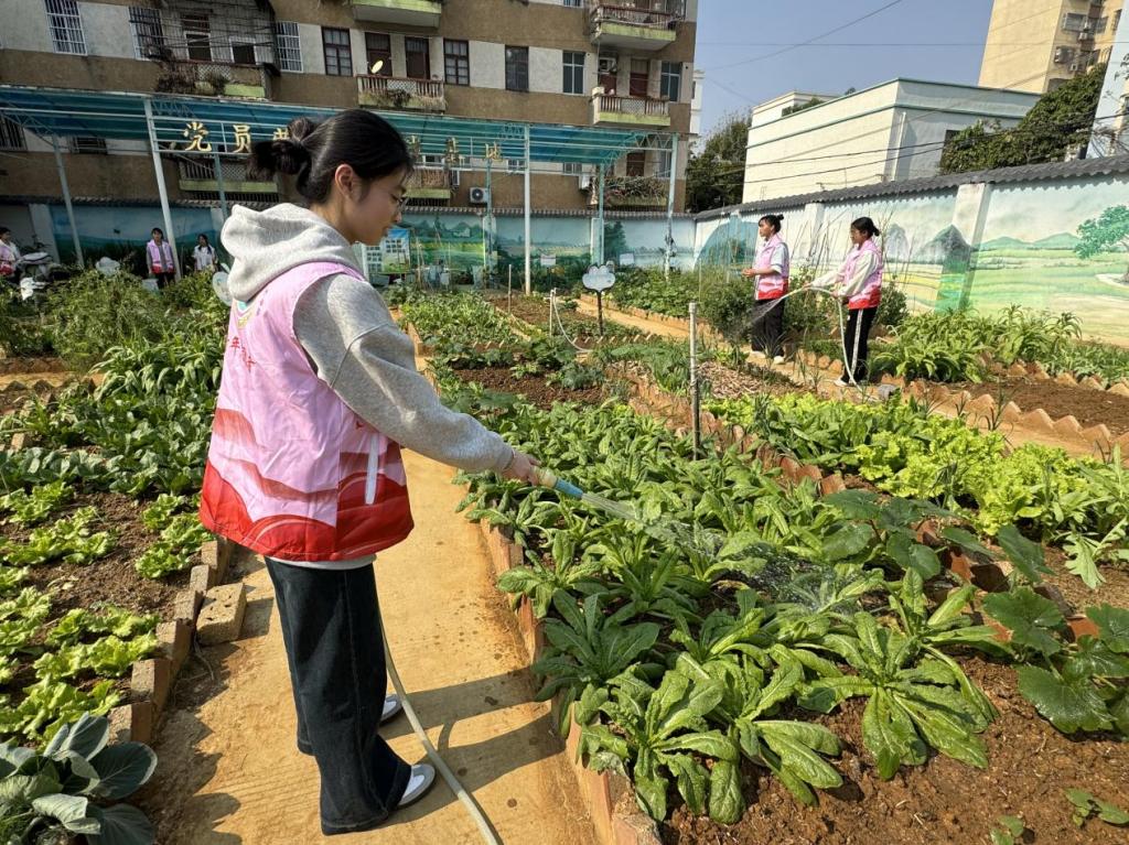 随后,志愿者们投入到紧张而有序的校园清扫工作中。他们仔细清扫校园内的每一个角落,捡拾垃圾,为特殊教育学校的孩子们营造了一个更加整洁、舒适的学习环境;大家还来到学校的种植园,整理土地,修剪枝叶,为种植园注入了新的生机与活力。