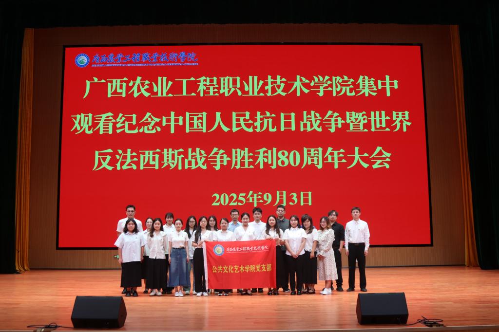 9月3日上午9时,公共文化艺术学院党支部全体党员着正装佩戴党员徽章来到学术交流中心,参加学校党委组织的集中观看纪念中国人民抗日战争暨世界反法西斯战争胜利80周年大会及阅兵仪式现场直播活动。