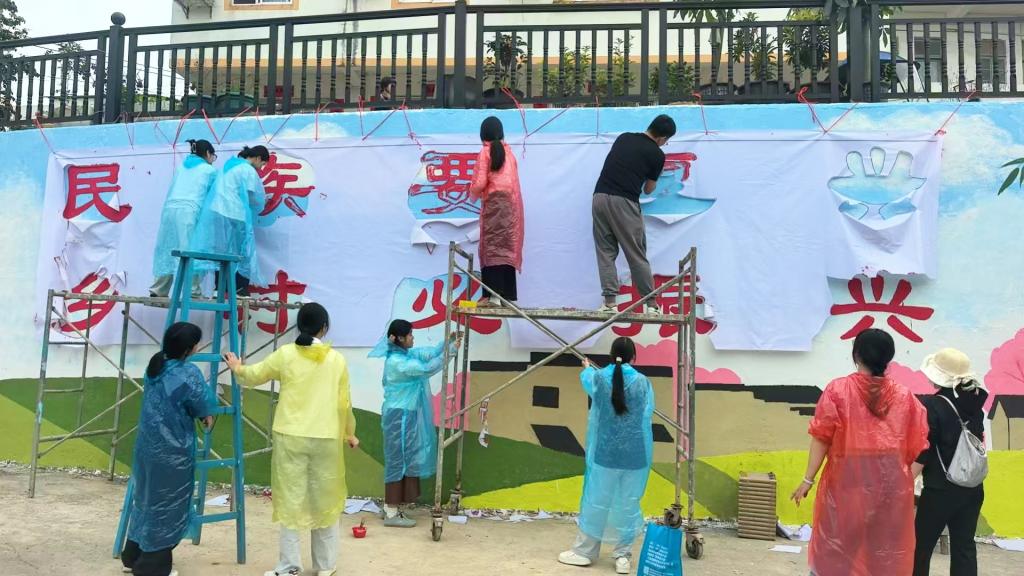 近日,公共文化艺术党支部组织党员教师带领入党积极分子,前往扶绥县林旺村,与林旺村党总支携手开展“笔墨绘新景,党群共筑梦”主题墙绘实践活动,以艺术赋能乡村建设,用实际行动美化村容村貌,传播文明新风。