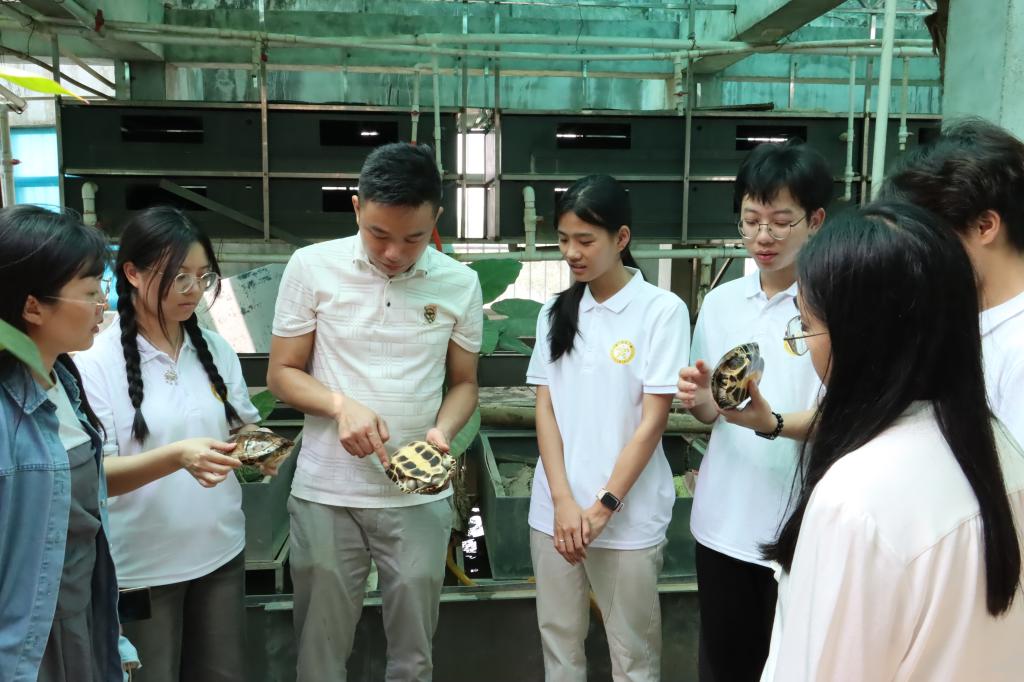 随后,团队前往崇左市圣博农业有限公司进行考察。公司负责人黎明带领师生参观养殖基地,详细讲解包括国家二级保护龟种在内的多品种龟鳖养殖管理模式,为团队提供了宝贵的行业经验。