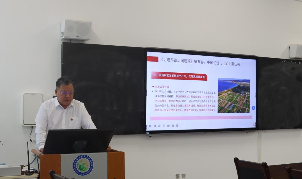 此次党课由海洋与渔业学院党支部书记农新闻主讲,主题为“深刻把握《习近平谈治国理政》第五卷主要内容”,领悟习近平新时代中国特色社会主义思想的最新成果,增强“四个意识”、坚定“四个自信”、做到“两个维护”。