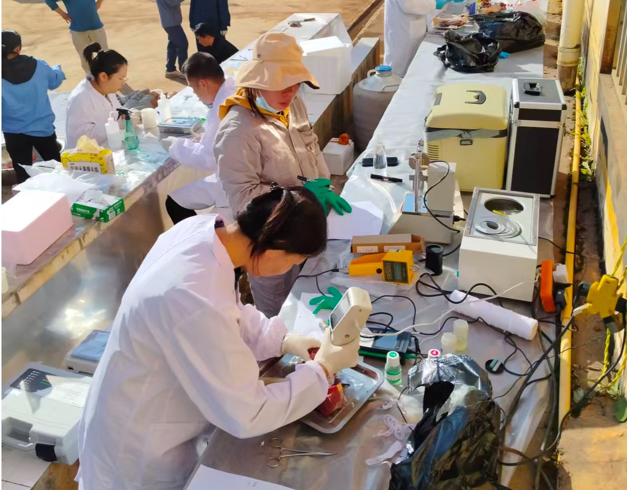 专家团队在进行马屠宰性能测定及采样相关技术培训