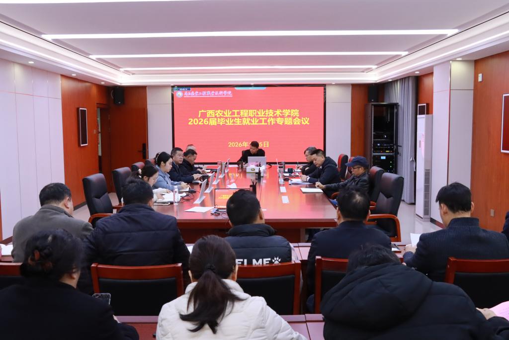 为深入贯彻落实上级关于高校毕业生就业工作的决策部署、统筹推进2026届毕业生就业创业各项工作,1月5日,我校召开2026届毕业生就业工作专题会议。学校领导班子全体成员出席会议,各部门及二级学院负责人、相关就业工作人员参加会议,共同为毕业生就业工作谋思路、定举措、抓落实。
