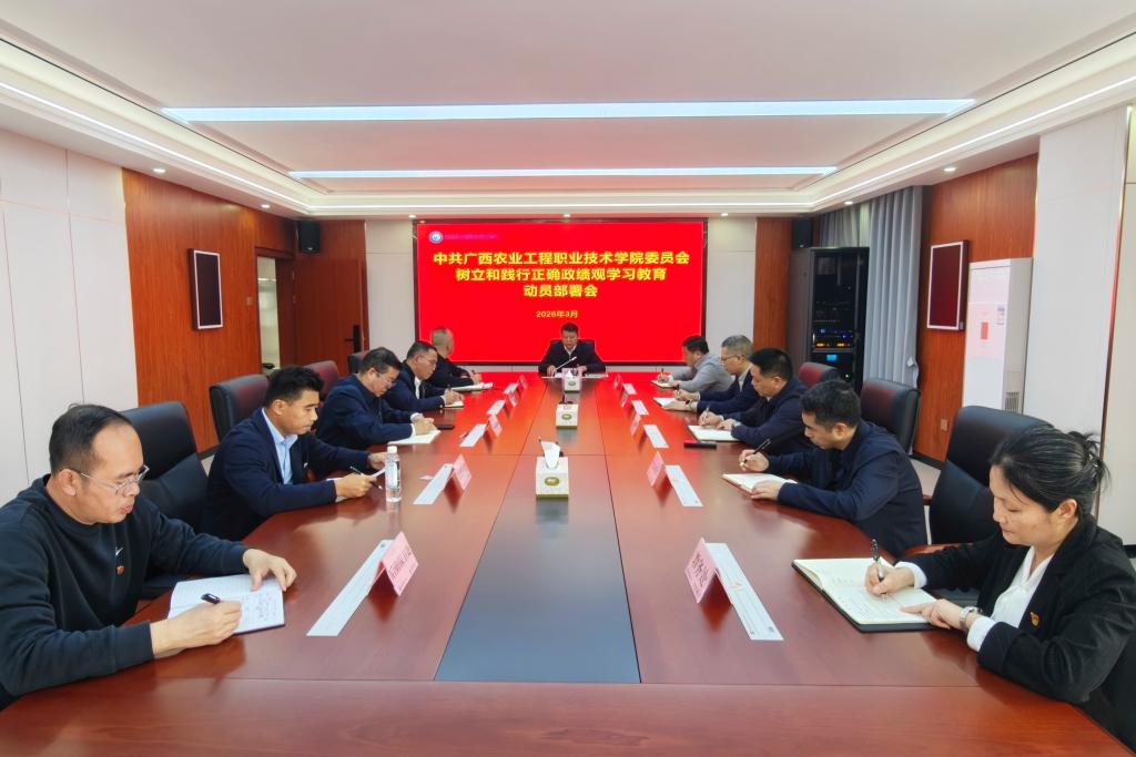 会议指出,习近平总书记关于树立和践行正确政绩观的重要论述为学习教育指明了方向、提供了重要遵循。作为广西农业类高职院校,全校各级党组织和全体党员干部要切实提高政治站位,深刻认识开展此次学习教育的重大意义,切实增强政治自觉、思想自觉、行动自觉,将其作为领悟“两个确立”、做到“两个维护”的具体行动,把思想和行动统一到党中央决策部署和上级工作要求上来。