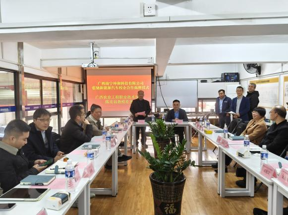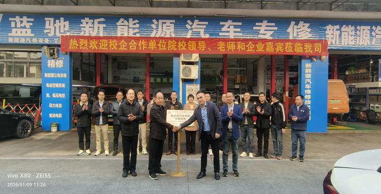 2026 年 1 月 9 日,广西农业工程职业技术学院机电工程学院与广西南宁蓝驰新能源汽车服务有限公司共建的“新能源汽车教师实践基地”校企合作揭牌仪式顺利举行,标志着学院在产教融合、教师实践能力提升及新能源汽车专业建设领域迈出关键步伐。