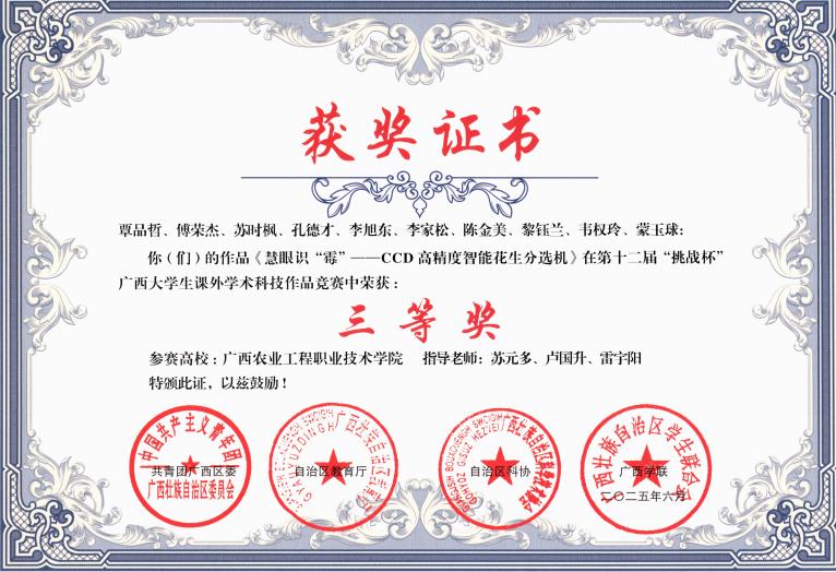 三等奖:《智慧识“霉”--CCD高精度智能花生分选机》项目