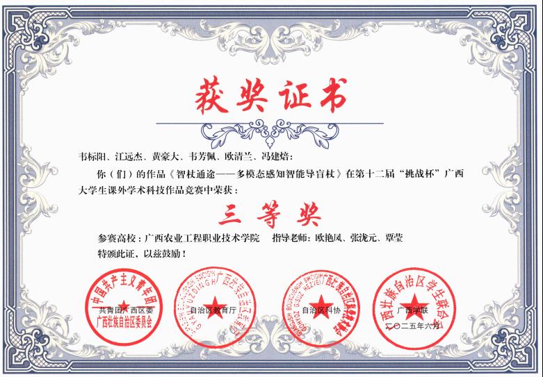 三等奖:《智杖通途--多模态感知智能导盲杖》项目