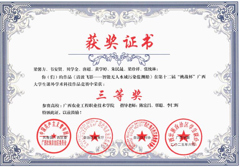 三等奖:《清波飞影--智能无人水域污染监测船》项目