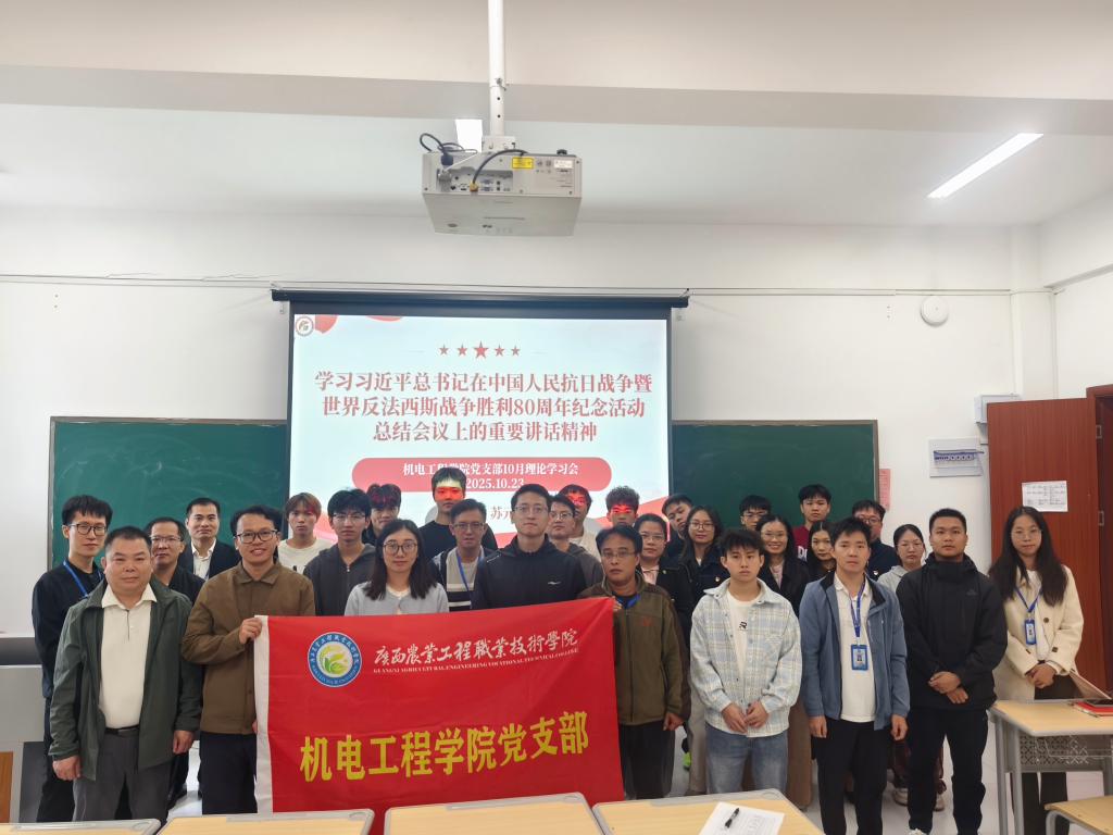 会议最后强调,全体党员要以本次理论学习为新起点,把抗战精神、共同体意识转化为攻坚克难的实际行动,在学科竞赛冲刺和征兵宣传等工作中亮身份、作表率,让党旗在机电工程学院一线高高飘扬。