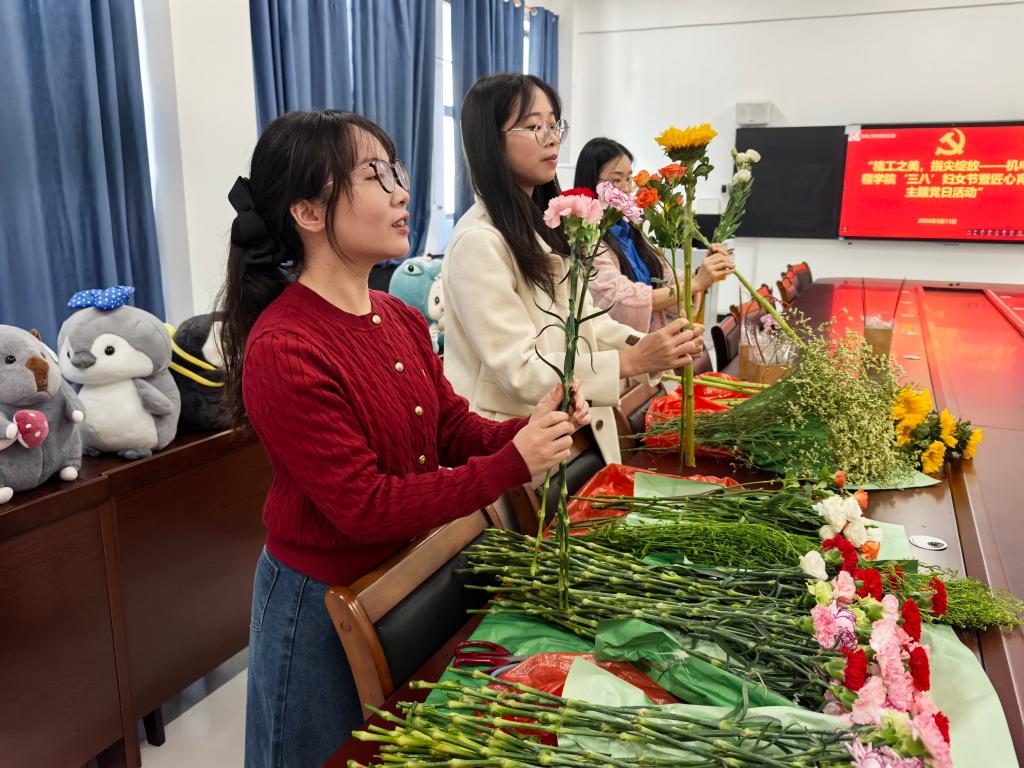 为庆祝第116个“三八”国际妇女节,丰富女教师精神文化生活,将党建活动与人文关怀深度融合,机电工程学院党支部于3月11日上午在12-508会议室组织开展“精工之美,指尖绽放”三八妇女节暨匠心育人主题党日活动。全体女教师在插花实践中感悟匠心精神,在指尖创作中绽放巾帼风采。
