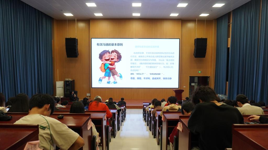 为巩固校园心理健康工作基础,提升宿舍长心理服务意识与能力,机电工程学院于2025年12月2日举办2025-2026学年秋季学期宿舍长心理专题培训。各年级宿舍长参与次次培训,学院辅导员温冰朋担任主讲。