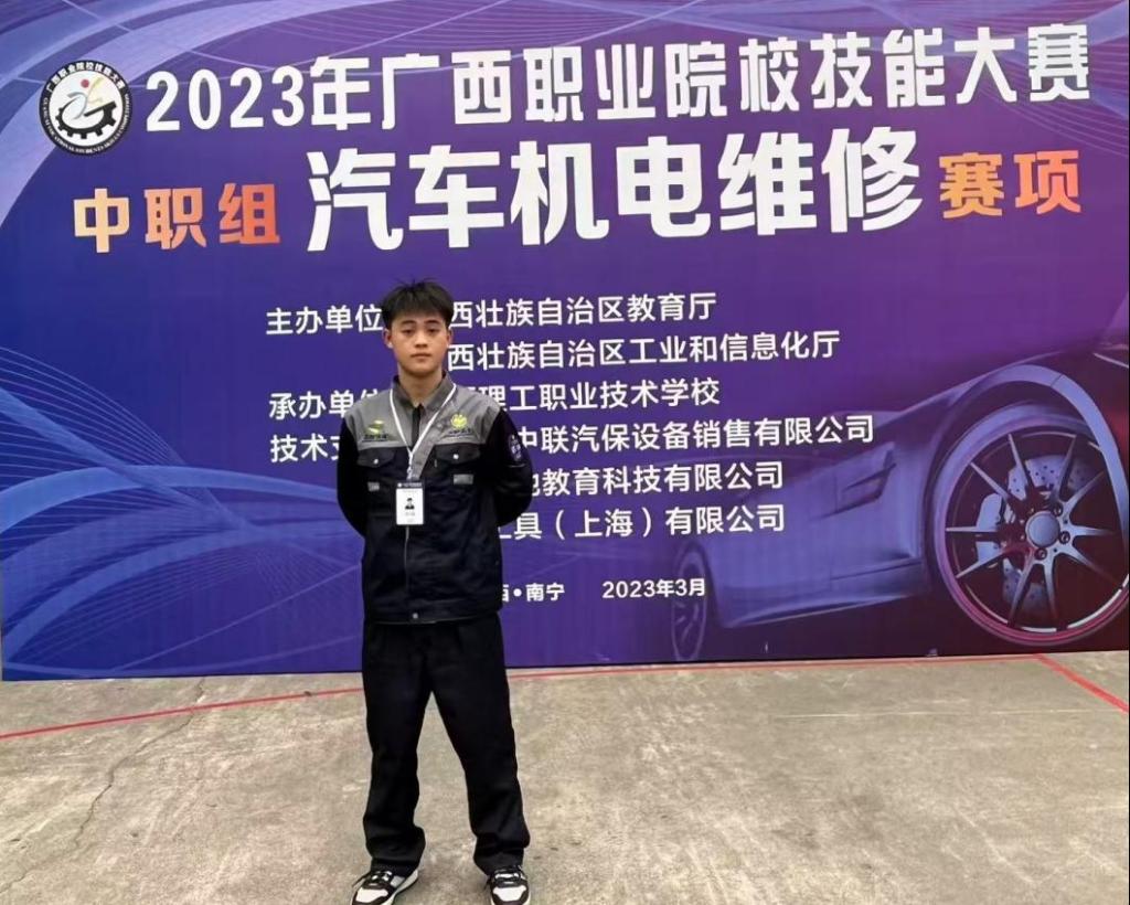 曾健龙,男,汉族,汽车检测与维修技术2023级2班学生,担任班级班长,专业排名第8名。在校期间荣获第十二届“挑战杯”广西大学生课外学术科技作品竞赛一等奖;2025年广西职业院校技能大赛高职组交通运输赛道汽车营销组赛项团体赛铜奖;第三届全国仿真创新应用大赛仿真创新设计赛道虚拟仿真创意设计方向职教组全国二等奖;2024年全国行业职业技能竞赛-第四届全国汽车流通行业职业技能竞赛决赛鉴定评估师(机动车鉴定评估师)学生组三等奖等多项荣誉。