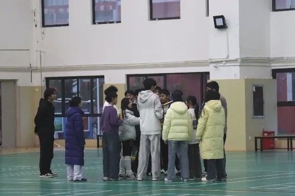 紧接着的旋风传递更是考验默契的时刻,同学们跟着节奏做出动作,肢体的配合、步伐的协调,让团队的凝聚力在欢声笑语中不断升温,体育馆里满是青春的活力与默契的火花。