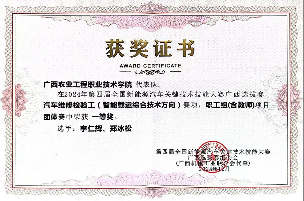 李仁辉,中共党员,机动车检测维修工程师,机电工程学院专任教师,自治区技术能手。担任《汽车发动机构造与维修》《汽车底盘构造与维修》等多门专业核心课的授课任务。参与自治区教改课题1项,中青年课题2项,校级课题3项,发表论文2篇。2023年度考核优秀,2024年优秀共产党员、教学质量优秀奖。参加第四届全国新能源汽车关键技术广西选拔赛汽车维修检验工(智能载运综合技术方向)获一等奖。指导学生参加比赛,获得国家级比赛三等奖1项,自治区级比赛二等奖2项,三等奖6项。