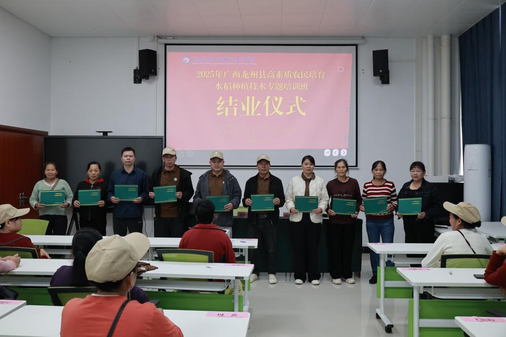 金秋十月,稻浪飘香。为夯实粮食安全根基,培育新时代农业领军人才,龙州县2025年高素质农民培育水稻种植技术专题培训正式开班。本次培训由龙州县农业农村局主办,广西农业工程职业技术学院承办,旨在通过“理论+实践+数字化”的全方位培育模式,为龙州县水稻产业高质量发展注入强劲人才动能。
