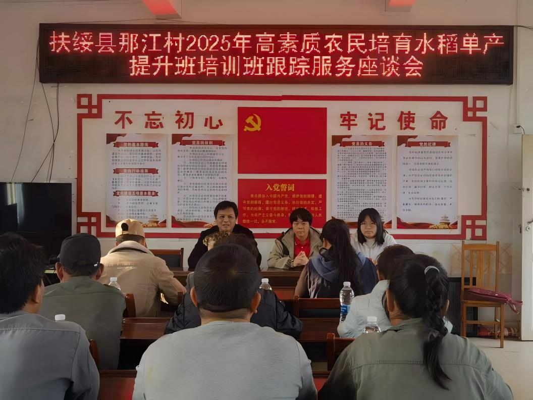 大部分培训班回访服务团聚焦农机装备、水稻精准播种技术及水稻单产提升方案开展专项指导;凭祥“菜篮子”专题班不同于其他班级,除讲解家禽养殖管护要点外,特别针对当地特色蔬菜的标准化栽培规程,从菜苗繁育、水肥调控到采收加工环节进行系统性示范教学。这种"培训+实践+跟踪"的闭环培育模式,有效解决了农民学员在产业发展中的技术断层问题。
