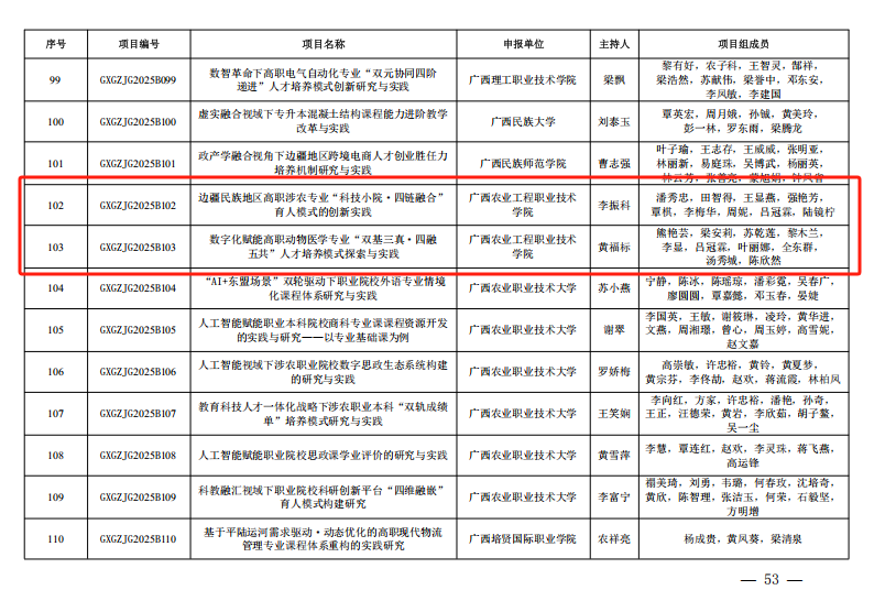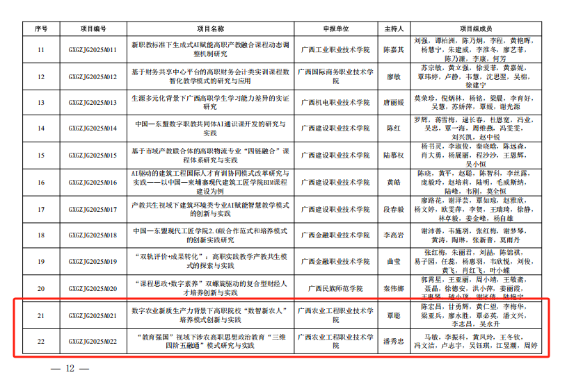 2025年度广西职业教育教学改革研究项目立项公布,我校4项课题成功获批