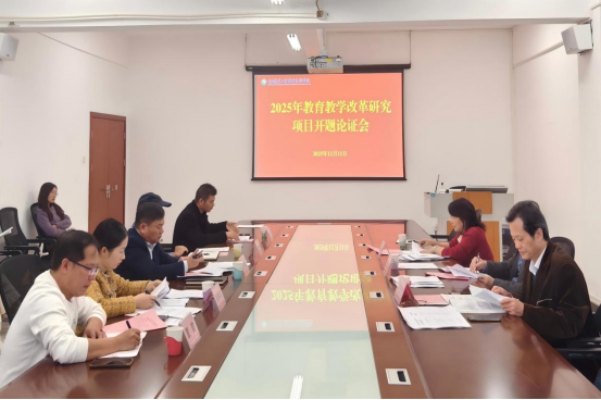 2025年12月11日下午,我校召开了2025年度广西职业教育教学改革研究项目开题论证会,会议特邀南宁师范大学职业技术师范学院党委副书记、院长陈良,广西物资学校研究员王显燕,学校特聘专家梁珠民三位教授到会指导。校长李振科、教务处兼科研处处长蓝宗林及各课题组成员共同参会。