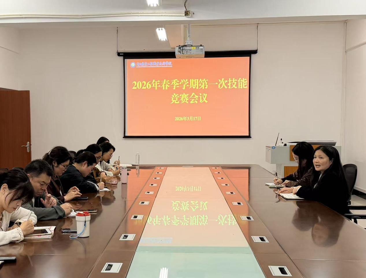3月17日上午,我校2026年春季学期技能竞赛工作会议在行政楼206会议室召开。教务处临时负责人熊艳芸、产教融合科、各二级学院技能竞赛业务负责人参加会议。