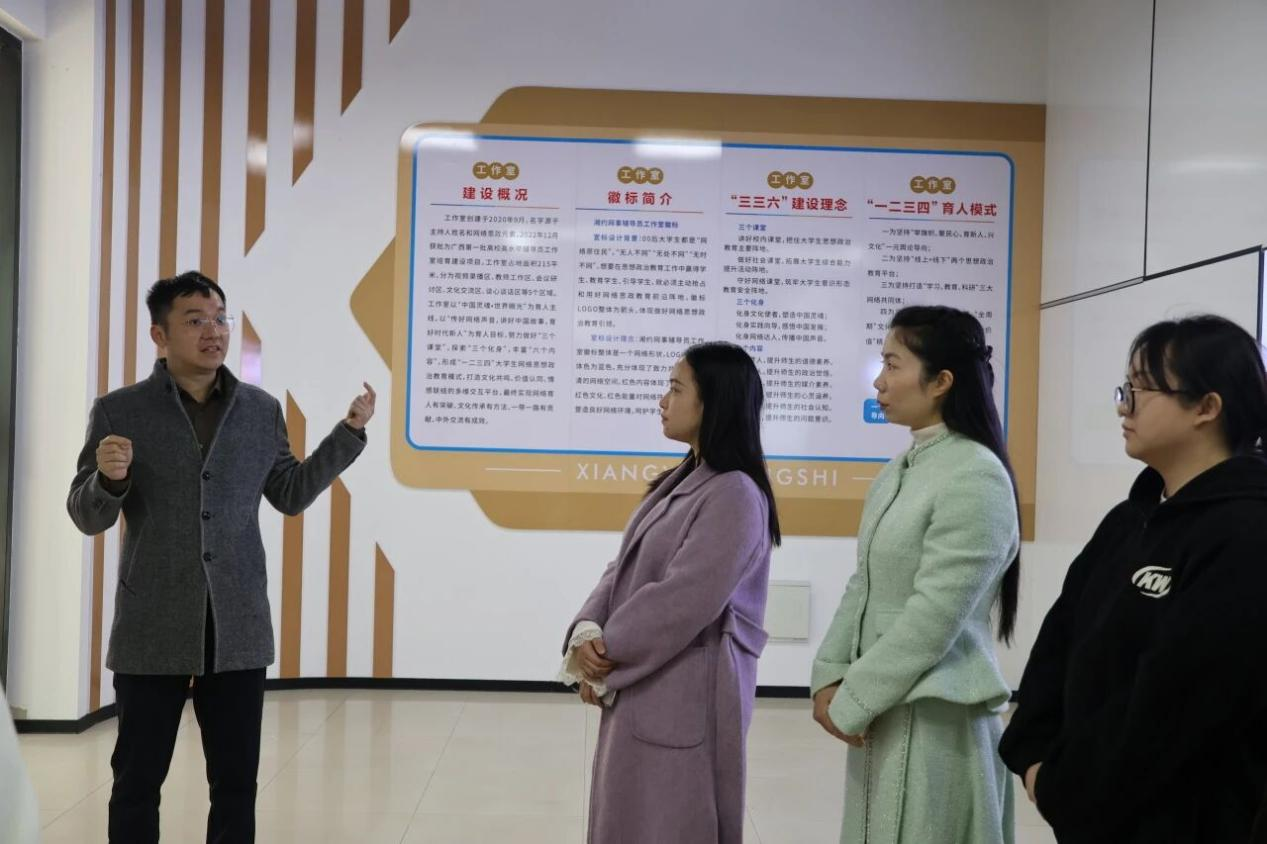 近日,为进一步提升我校辅导员队伍的专业素养和工作能力,拓宽思政教育工作思路,我校思贤工作室与薪火辅导员工作室的主持人及成员前往“湘约网事”辅导员工作室进行了一次深入而富有成效的交流学习活动,活动由学生工作处学生管理科科长覃棋带队参加。此次活动由学校学生工作处精心组织,旨在通过校际间的深度对话,共同探索新时代下高校思政教育的新路径。