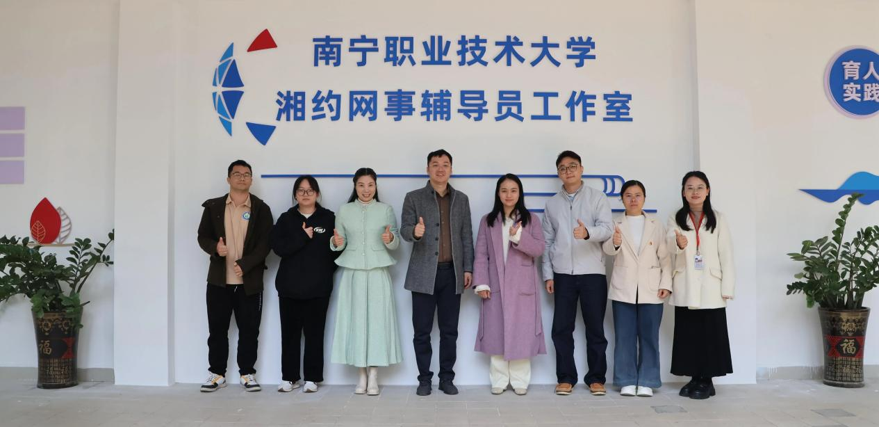 抵达目的地后,“湘约网事”辅导员工作室的热情接待让每一位来访者都感受到了浓厚的学术氛围和人文关怀。在简短而又热烈的欢迎仪式之后,双方围绕如何更好地利用新媒体平台开展有效的思想政治教育展开了广泛讨论。作为国家级辅导员名师工作室,南宁职业技术大学党委学生工作部副部长、“湘约网事”辅导员工作室主持人林为湘及工作室成员李婵老师介绍了他们近年来在构建线上线下相结合的教育模式方面所取得的成绩,同时分享了关于品牌建设、特色活动策划等方面的宝贵经验。