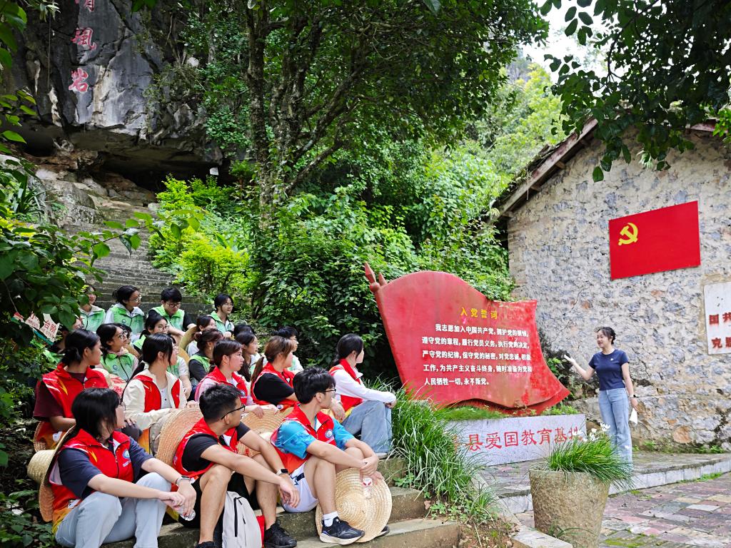 在都康乡实践期间,覃海贤、颜佳慧两位思政教师依托当地红色研学基地、乡村振兴成果示范点、特色种植基地等实景课堂,围绕乡村振兴主题开展专题授课。
