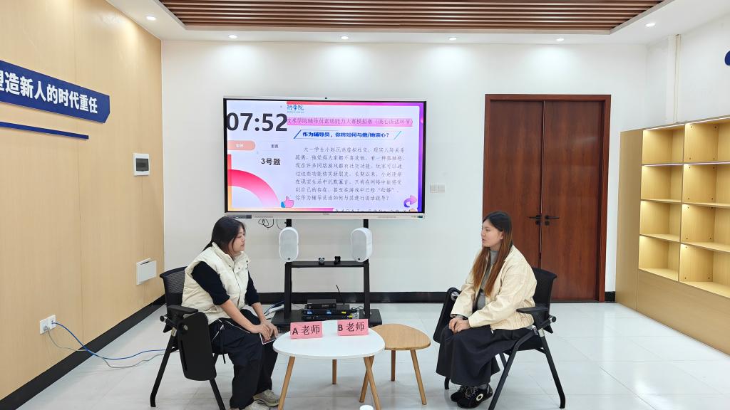 在案例研讨环节,面对学生网络舆情危机等复杂情境,参赛教师迅速厘清问题本质,综合运用政策法规、教育规律和工作经验,提出系统、可行的应对方案,体现出扎实的理论功底与应急处置能力。谈心谈话环节则围绕学业压力、情感困扰等常见学生问题,参赛教师以平等、共情的姿态开展深度对话,用真诚与智慧引导学生纾解困惑,彰显了思政工作者“润物无声”的育人艺术。