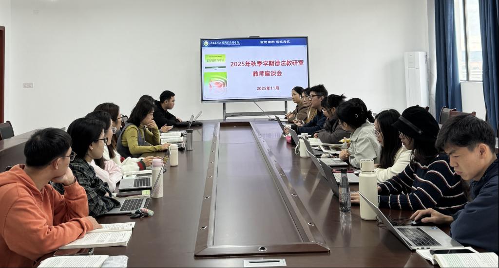 2025年11月11日,马克思主义学院思想道德与法治教研室召开2025年秋季学期教师座谈会。副院长潘秀忠出席会议,教研室全体任课教师参加会议。会议由教研室主任卢志宇主持。