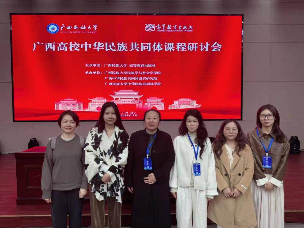 为深入学习贯彻落实习近平总书记关于加强和改进民族工作的重要思想,进一步推进《中华民族共同体概论》课程高质量建设,提升课程的教学质量与实效,由广西民族大学、高等教育出版社主办的“广西高校中华民族共同体课程研讨会”于2025年12月13日在南宁成功举办。本次研讨会以“深化课程内涵建设,提升育人实效——中华民族共同体课程教学研讨与交流”为主题,吸引了来自全区部分高校的相关课程负责人、骨干教师、专家学者及一线教育工作者代表齐聚一堂,共商课程建设大计,共话育人使命担当。本次研讨会由我校马克思主义学院院长石立波教授带队参会。