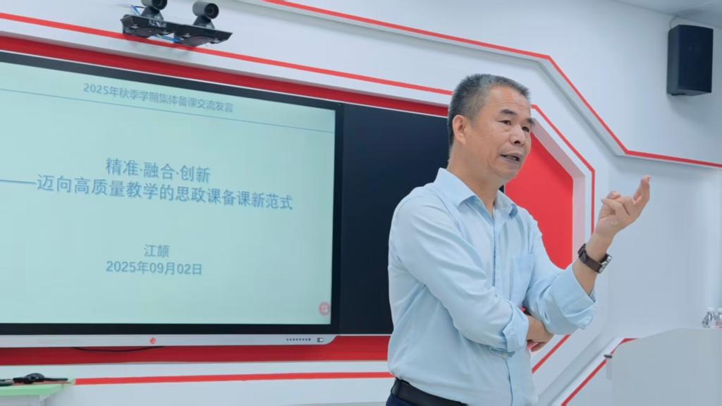 2025年9月2日上午,我院以“精准·融合·创新——迈向高质量教学的思政课备课新范式”为主题,召开2025秋季学期首次全体思政课教师集体备课会。我校思政领军人才江颉教授担任主讲,围绕备课方法、教材转化、学情分析等六大模块展开系统培训。学院领导班子及全体专任教师参会,共同探索思政课提质增效新路径。